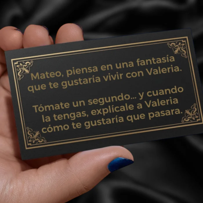 Cada carta propone una pregunta íntima, un reto sensual o una acción provocadora diseñada para que la tensión vaya creciendo.